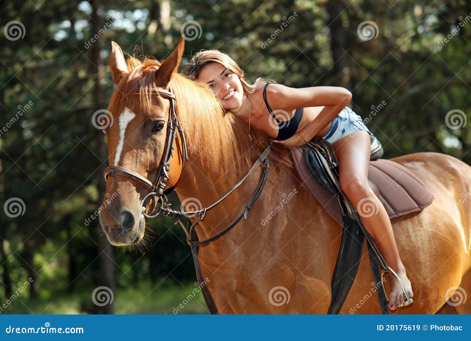 Donne Sessuali Sul Cavallo Nero Fotografia Stock - Immagine di solite