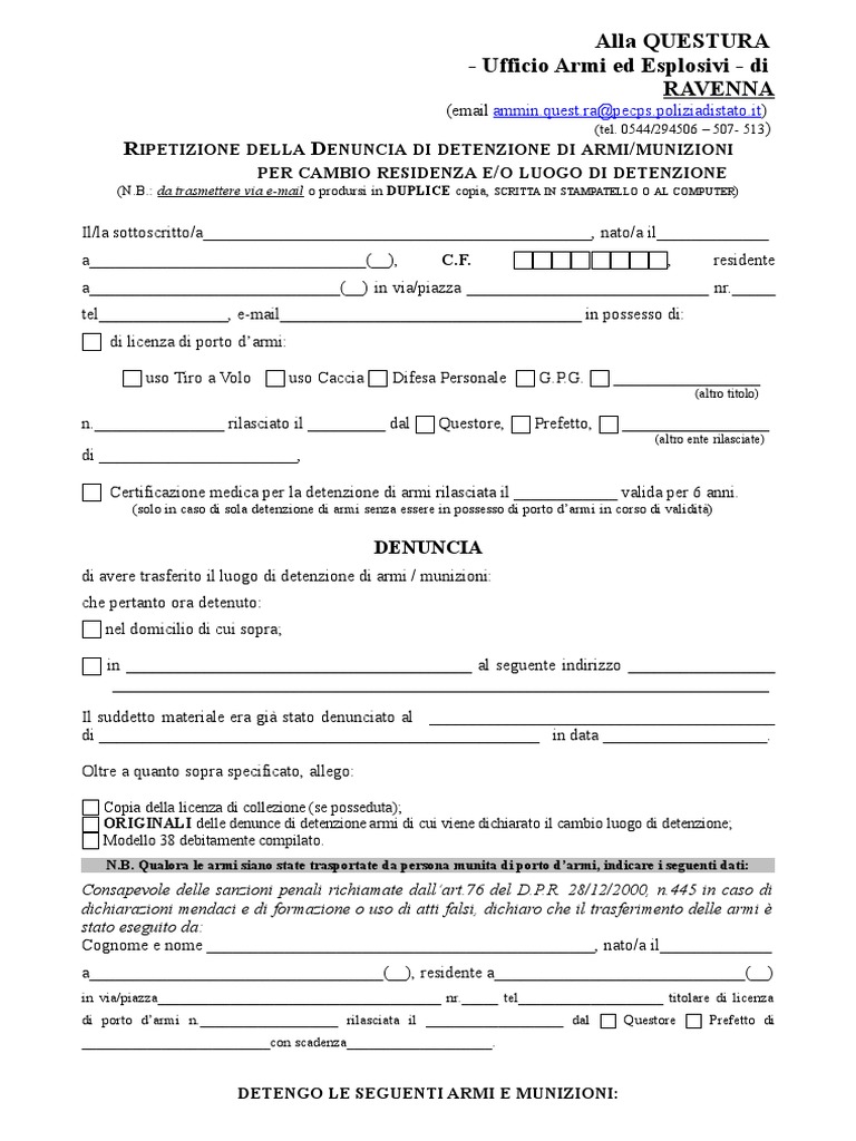 2 Ripetizione Denuncia Per Cambio Luogo Di Detenzione Delle Armi 1
