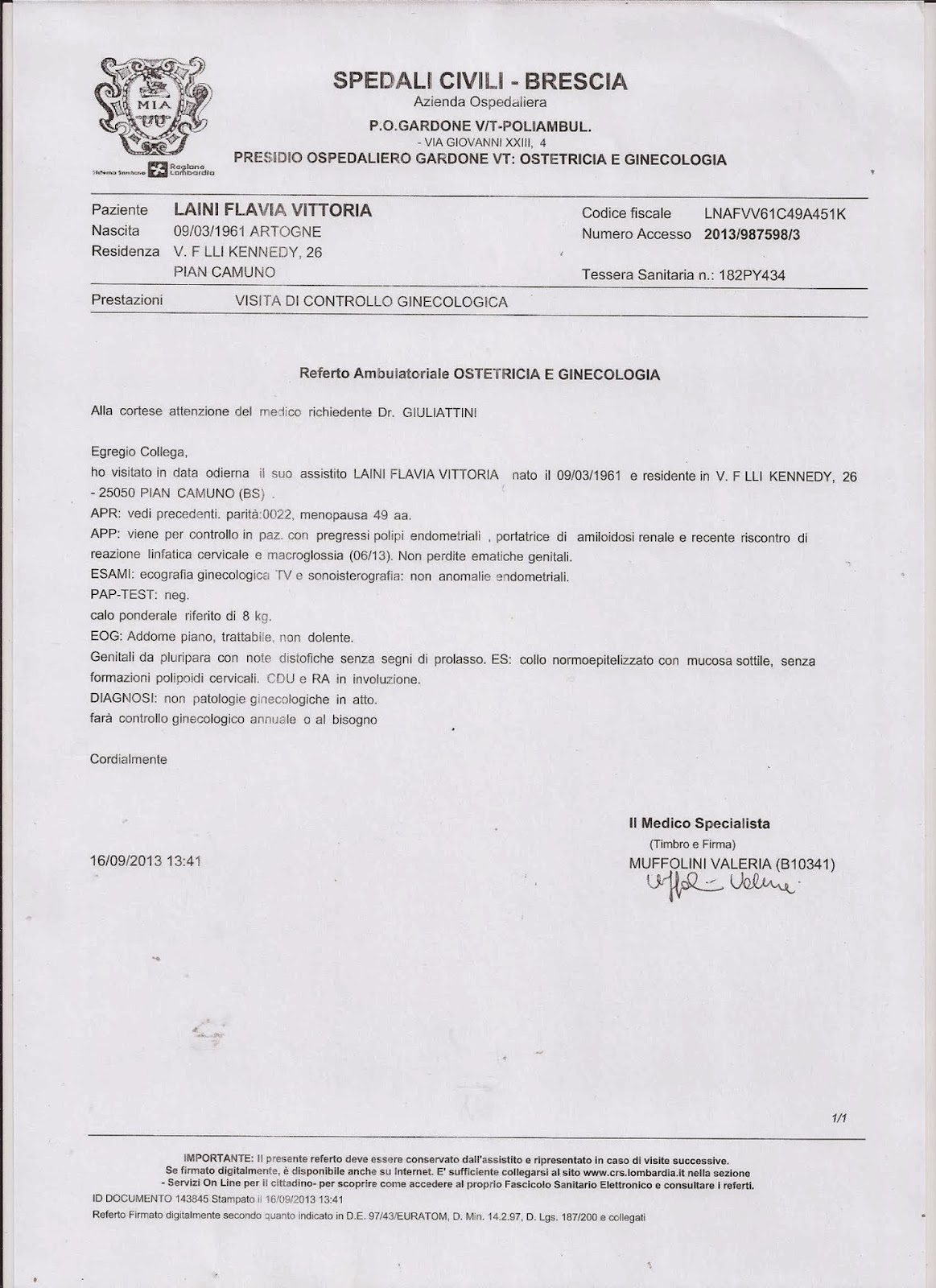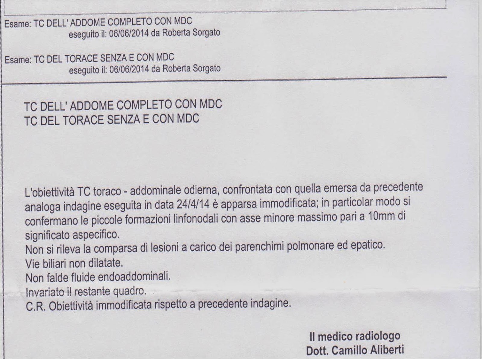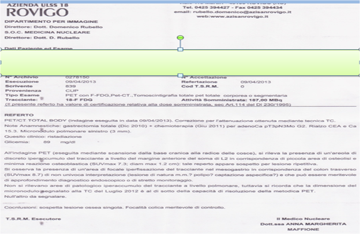 Referto Medico Di Un Tumore.